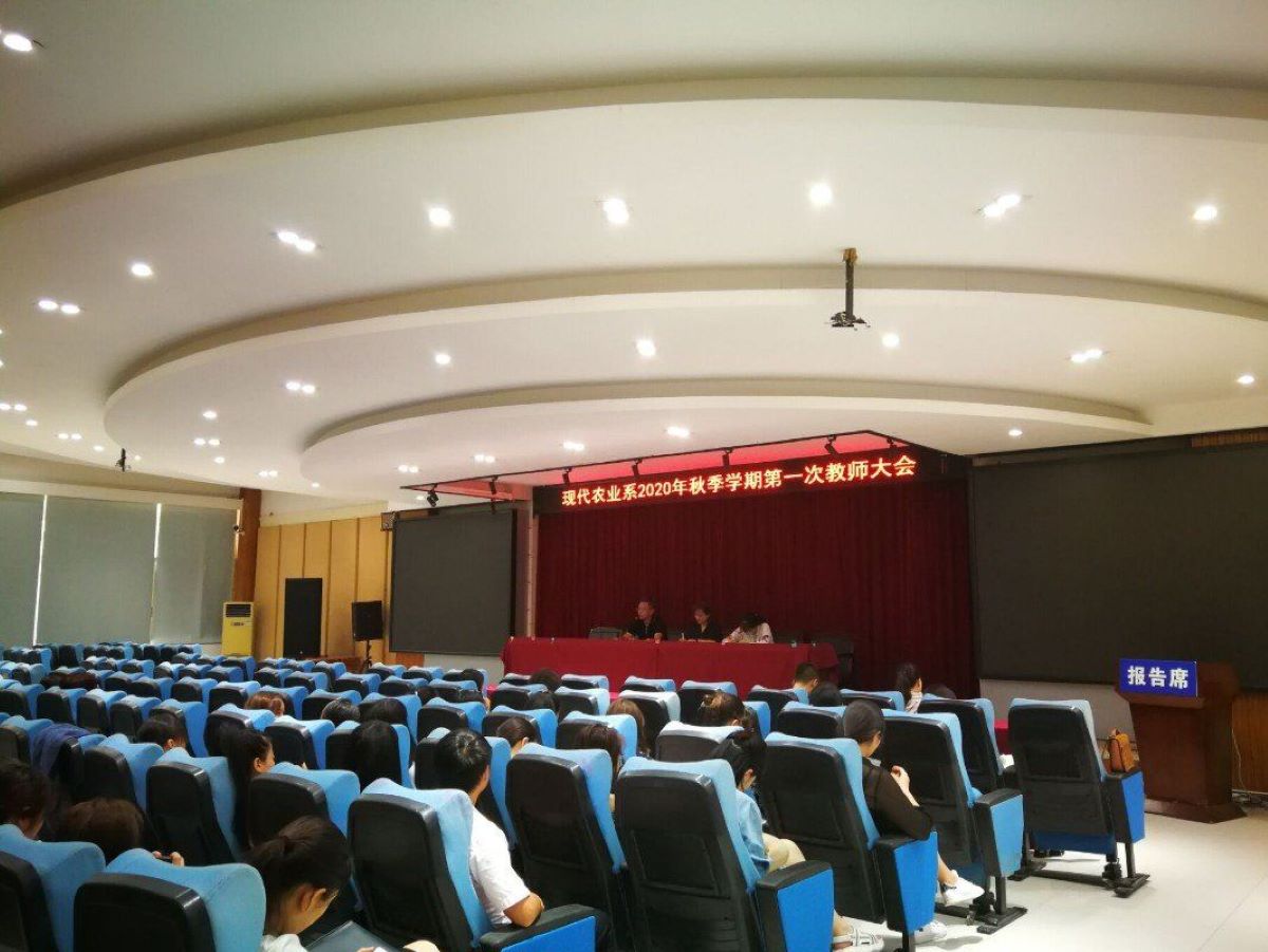 2020年9月8日,现代农业系在德政厅召开2020年秋季学期第一次教师大会,星空体育网页版副校长唐光建,现代农业系主任陈瑞春、副主任李林芷,现代农业系班主任及全体任课教师共同出席了本次会议。会议由现代农业系主任陈瑞春主持。
