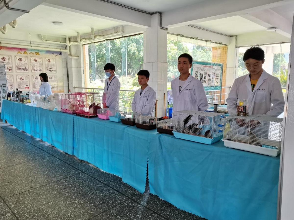 为配合在学校召开的职教集团成立大会召开,5月28日动科系养殖协会协同全校其他系的教学协会在教学楼大厅布置了展示台,6月4-6日全市中职学校跳绳比赛在星空体育网页版举行期间,动科系养殖协会学期成果展也轰轰烈烈展开,并持续一周,充分展示养殖协会本学期的成果,除了养殖的实验实习动物之外,主要展示了部分小动物,如兔、龟、蛇、仓鼠、花枝鼠等。主持展示宣讲和维护展台的同学由养殖协会主要负责人朱圆庄、黄吉剑、廖文军带领20级畜牧兽医1-4班和20级宠物养护与经营1-2班的协会成员组成,同学们干劲十足,积极参与,身着整洁的白大褂,给前来观展的师生和校外来宾留下了良好的印象。