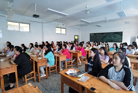 图1 全校教职工在德政厅观看直播 图2 学生在教室观看直播