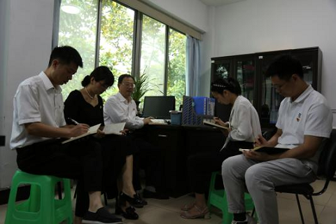 图5 财务部会后开展学习研讨 图6 学工部会后开展学习研讨