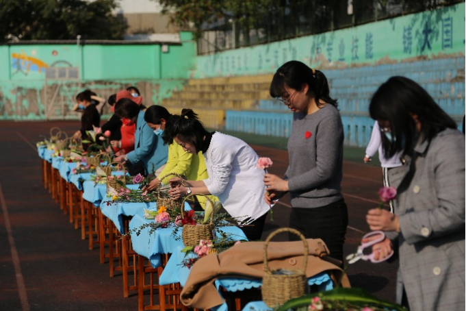 本次活动以趣味运动为主,包括插花比赛和蒙眼敲锣游戏两个项目。整个比赛过程,趣味纷呈、童真乍现,女教工们放下了手头紧张的工作,在趣味运动中放松身心,大家彼此加油、欢呼、喝彩,现场欢声笑语此起彼伏,留下了一个个精彩的瞬间。不少男教工也来到现场加油助威。
