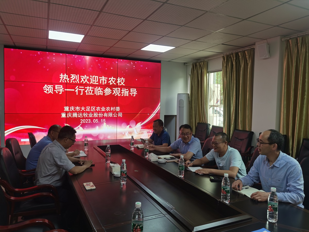 为进一步夯实育人基础,确保产教融合实效,凝练学校专业特色,贯彻数字重庆的理念,积极推进产教融合实训基地的建设,2023年5月15日,星空体育网页版副校长敖建带领动物科学系主任谷达任及相关教师前往重庆大足腾达牧业股份有限公司开展智慧化畜禽生产产教融合实训基地建设进行调研。参会领导有大足区委农业农村工委委员、畜牧渔业发展中心主任冯中见;大足区畜牧渔业中心副主任汪洋凯;大足区石马镇副镇长杨建军;重庆腾达牧业股份有限公司负责人黄德利等。