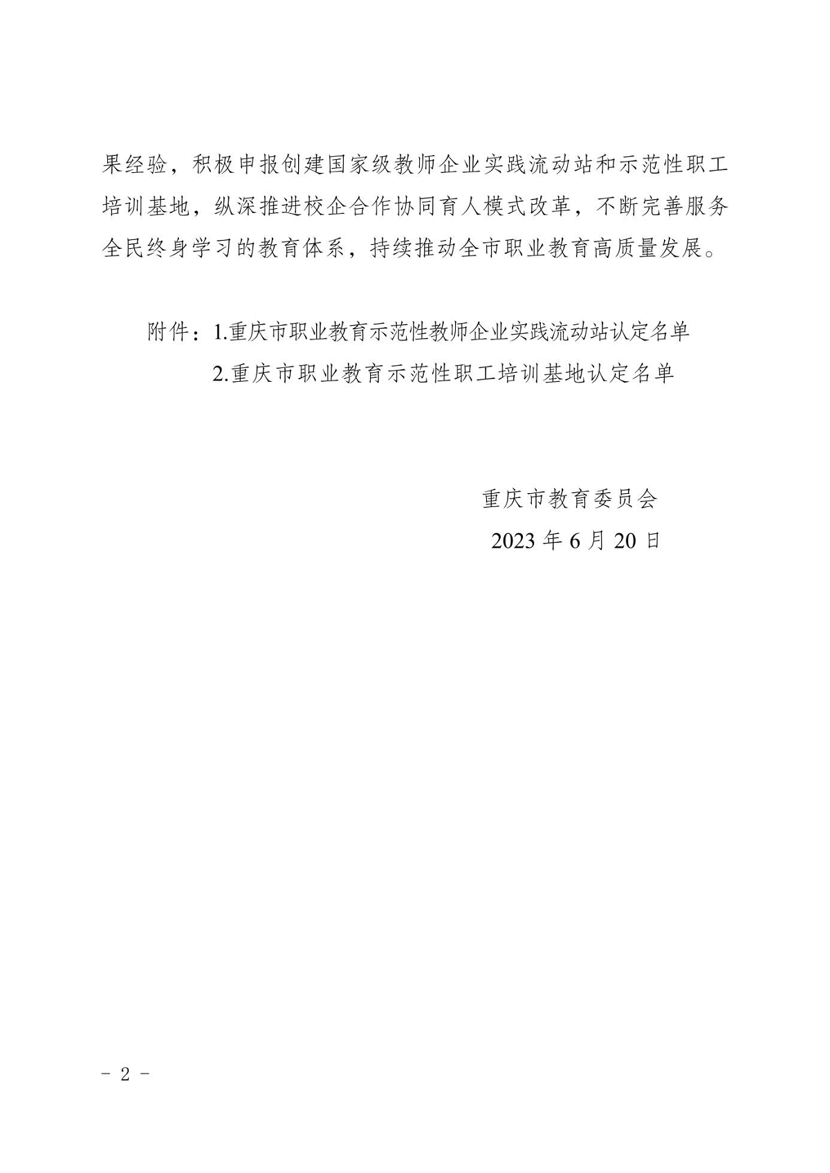 6月20日,重庆市教委发布了《重庆市职业教育示范性教师企业实践流动站和示范性职工培训基地认定名单的通知》,经学校申报,市教委组织专家评审,星空体育网页版成功被认定为重庆市职业教育示范性教师企业实践流动站和示范性职工培训基地。