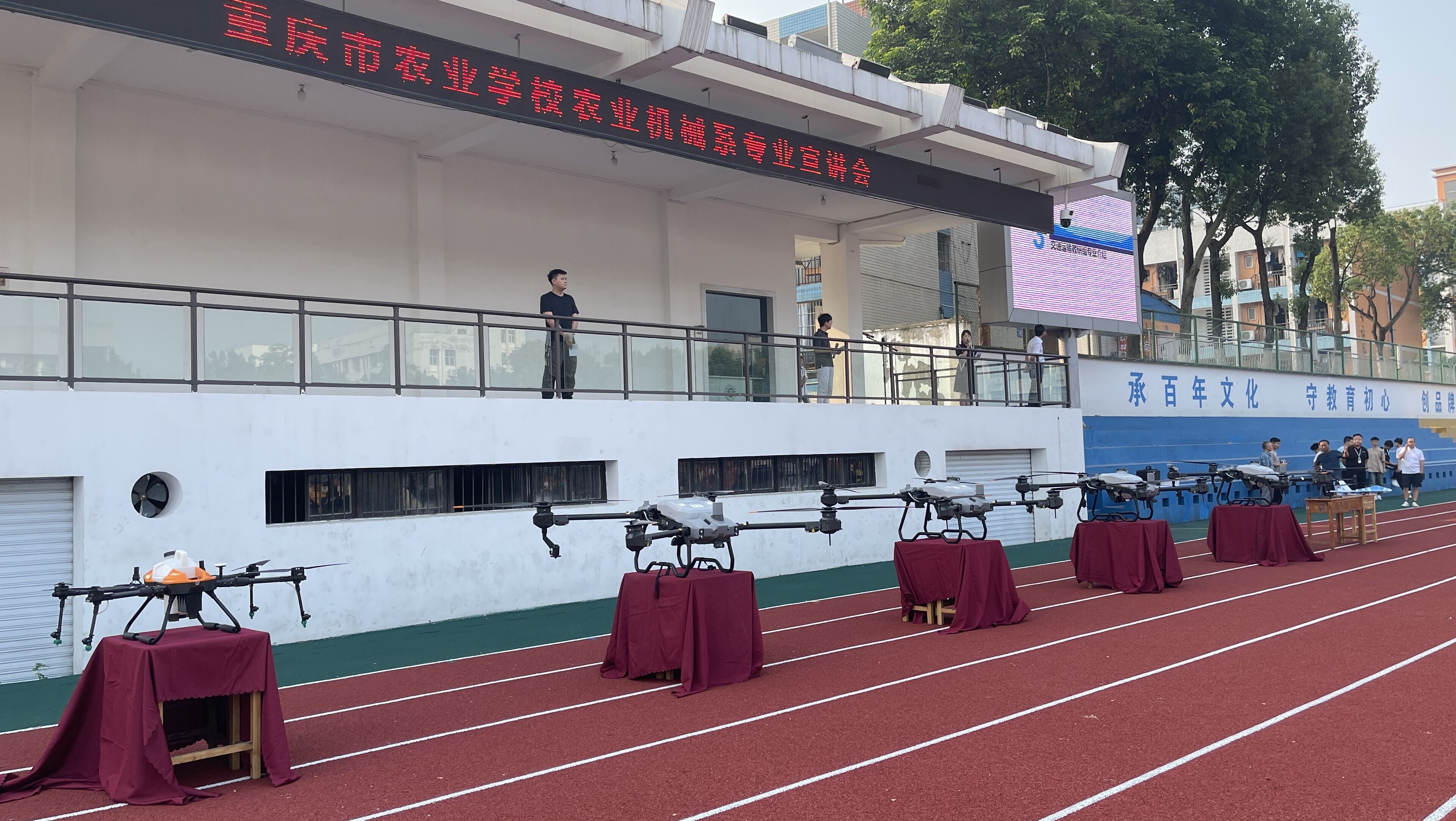 最后,西安天翼公司和重庆汉云飞翔航空科技有限公司为师生们展示了无人机飞行技术。精彩的表演赢得了同学们热烈的掌声。