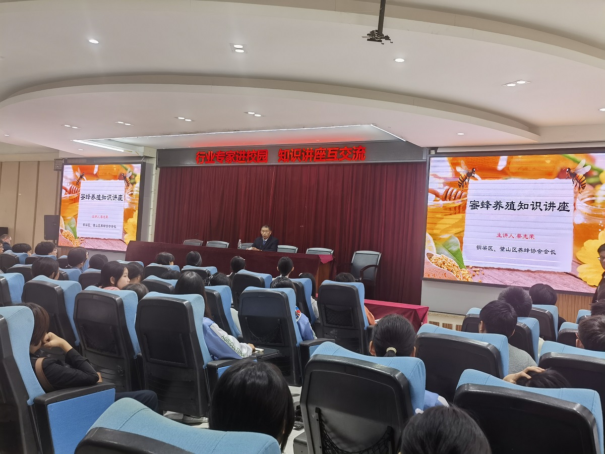 讲座邀请了铜梁区、璧山区养蜂协会蔡光荣会长就养蜂行业发展与技术进行专题分享。蔡会长多年来从事蜜蜂的科学研究及实践养殖,讲座中,蔡会长就蜜蜂与人类的关系,蜂蜜的价值,饲养蜜蜂对农业增产,乡村振兴的作用等方面展开讲解。蔡会长结合目前养蜂工作实际中的行业技能要求及常见问题进行了生动案例分享,帮助老师和同学们了解专业技能在行业中的具体要求、关注理论教学和行业实际之间要求的差异、提高贴近行业实践能力培养的重要性。讲座受到师生一致好评,尤其是蜂蜜的营养价值及合理食用方面。