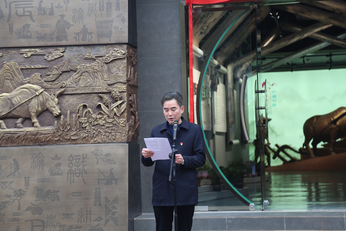 在热烈的掌声中,韩以政总农艺师和王官成书记为文化馆揭牌,标志着巴渝农耕文化馆正式对外开放。
