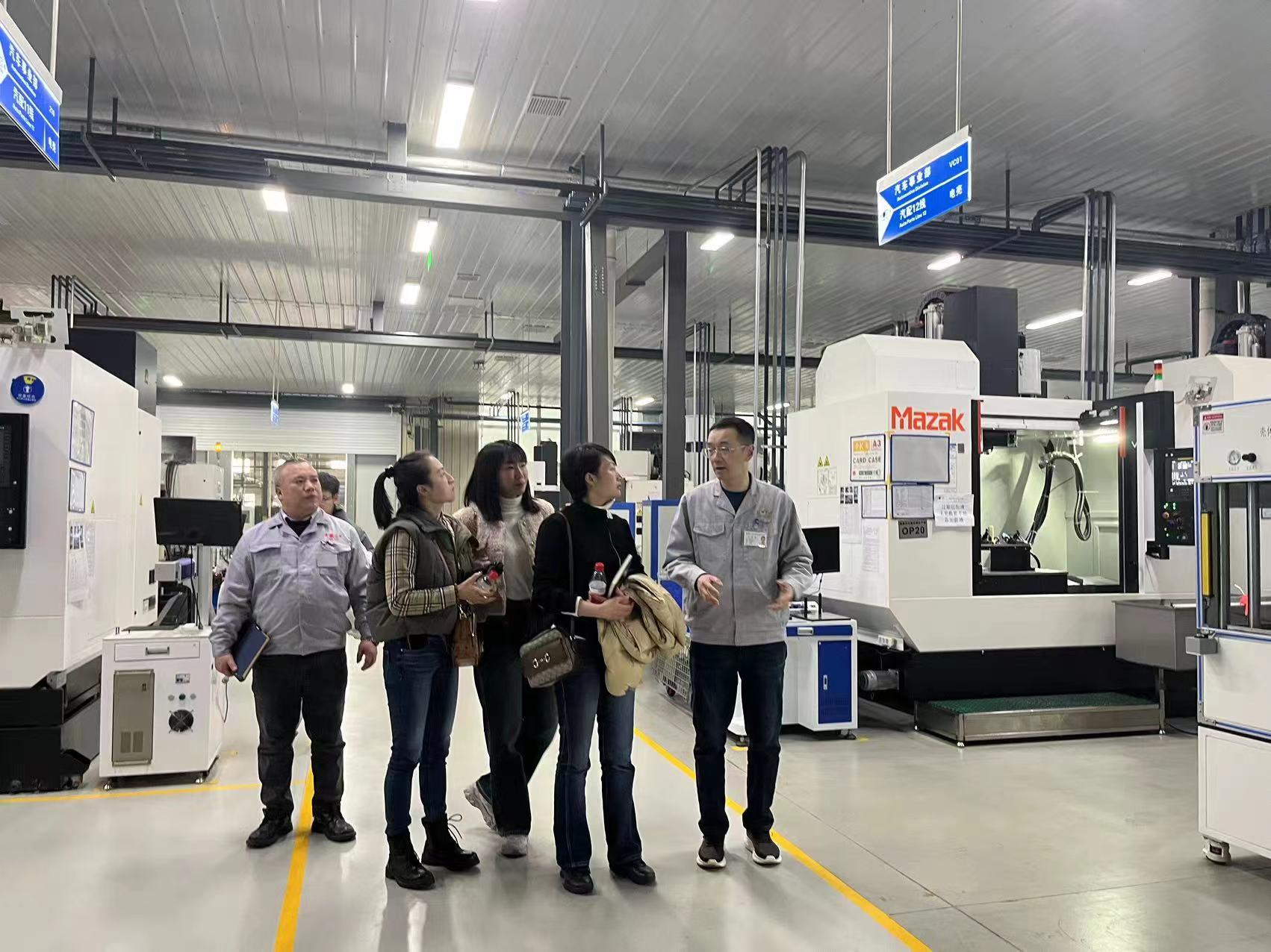 座谈会完毕,在公司卢副总经理的带领下,参观了公司的自动化生产线、农机模具加工车间、新能源汽车模具加工车间、质检室等。