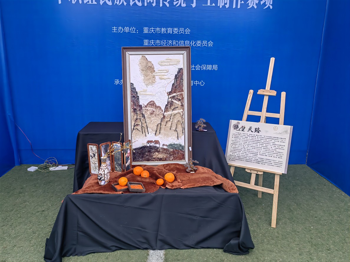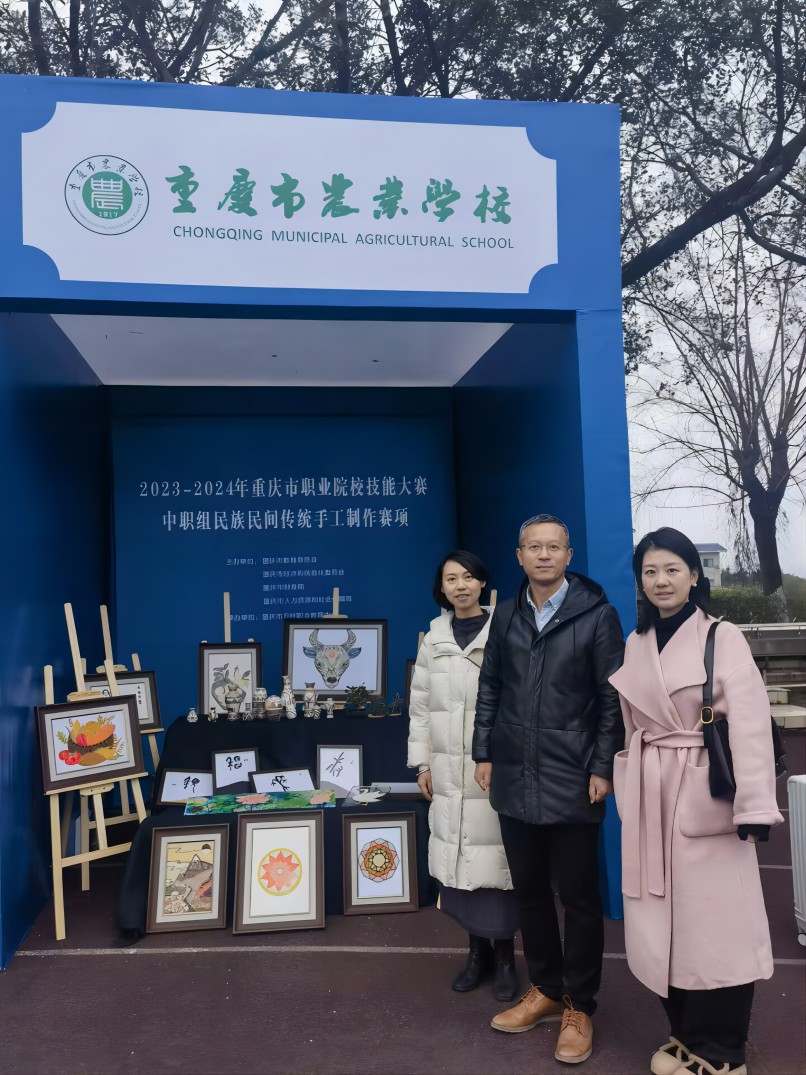 2024年2月29 日,重庆市职业院校技能大赛民族民间手工制作赛项在重庆市万州职业教育中心成功举办。此次比赛全市三十所中职学校共120名学生齐聚一堂,共展风采。作品涵盖五谷粮食画、麦秆画、三峡国画石、烙画、剪纸、泥塑、陶器、雕刻、掐丝珐琅、蜡染等众多非遗手工种类作品。星空体育网页版首次组队参加该赛项,校领导班子高度重视,分管副校长唐光建亲临现场指导并为学生加油打气。