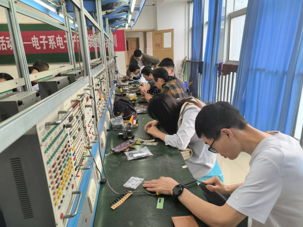 培训过程中,系主任陈曦同志给老师们强调了本次培训的目的及意义,希望老师们通过本次培训,提升综合素质,把所学知识和技能运用到实际教学中去,为推进智慧教育贡献自己的力量。彭斌副主任耐心仔细地给老师们讲解了电子元件装配的基础知识、功能特点、应用场景、操作方法、注意事项。老师们虚心学习、认真练习、互相帮助,热情很高。