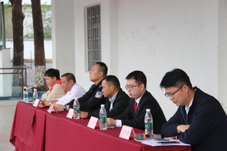 图1 (从右到左依次为)学校陈光涛副校长,白市驿法庭王凯副庭长,白市驿镇法治委员兼统战委员付晓敏,白市驿派出所张玮教导员,白市驿镇司法所所长幸奠云,铁路白市驿站廖仁志