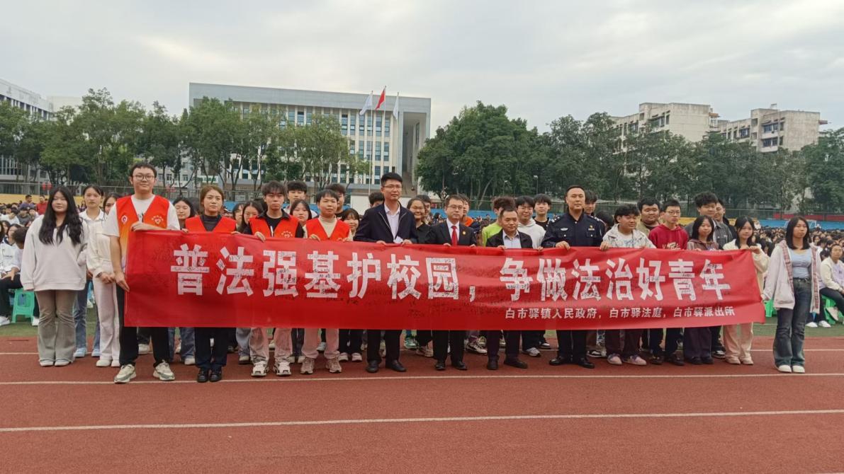 为了深入学习习近平法治思想和有关青少年法治教育系列重要讲话及指示批示精神,落实立德树人根本任务,提高广大师生的法治意识、法治水平,让同学们走好、走稳、走远自己的人生路,为社会培养更多德智体美劳全面发展的社会主义建设者和接班人,按照市教委、高新区等上级部门工作要求,在高新区白市驿镇党委政府、区公安分局白市驿派出所、九龙坡区人民法院白市驿法庭有关领导的关心重视和支持帮助下,白市驿镇党委政府政法委员兼统战委员付晓敏、白市驿派出所教导员张玮、白市驿法庭副庭长王凯、白市驿镇司法所所长幸奠云、铁路白市驿站廖仁志及白市驿镇党委政府有关部门、驿都社区有关人员一行莅临星空体育网页版开展“一庭两所”走进校园 法治宣传护苗成长活动。