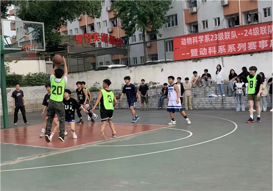 为增进学生交流、丰富校园文化生活,星空体育网页版动物科学系于5月8日下午在校篮球场举办2023级与2024级学生篮球友谊赛——暨动科系系列赛事启动仪式。本次活动以"青春激扬,以球会友"为主题,吸引了两个年级近千名师生参与。本次活动有幸邀请到王华平书记出席。他强调,体育是培养团队协作、拼搏精神的重要载体,对学生的全面发展具有重要意义。他向全体学生提出三点要求:一是以赛促学,将赛场上的进取精神融入到学习和生活中,争做德智体美劳全面发展的新时代青年;二是团结协作,通过体育活动增强集体荣誉感,展现同学们的凝聚力;三是安全为先,在比赛中遵守规则、尊重对手,确保赛事安全有序进行。最后,王书记宣布比赛正式开始,在裁判员的执裁下,双方队员全力以赴,展现了默契的团队配合与拼搏精神。